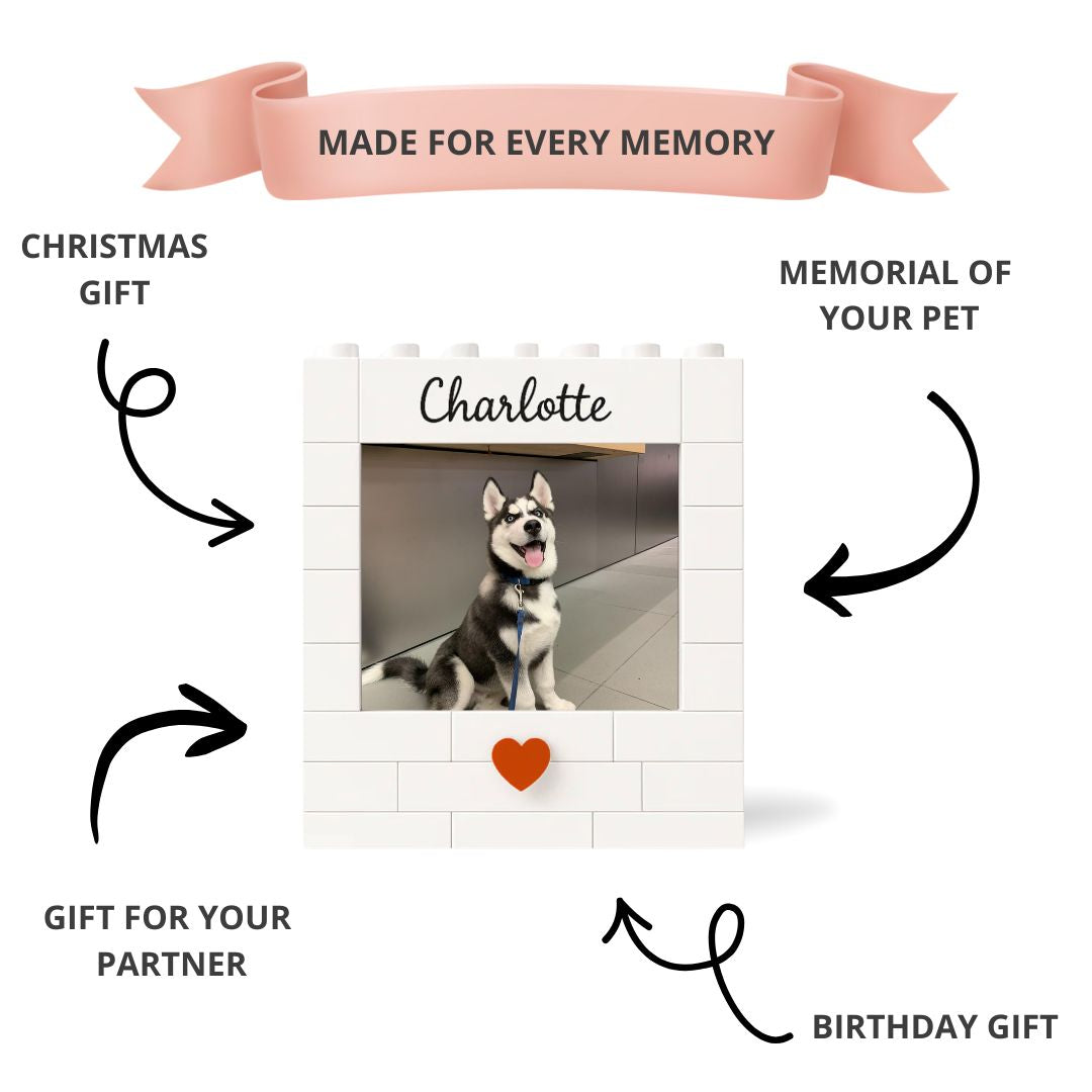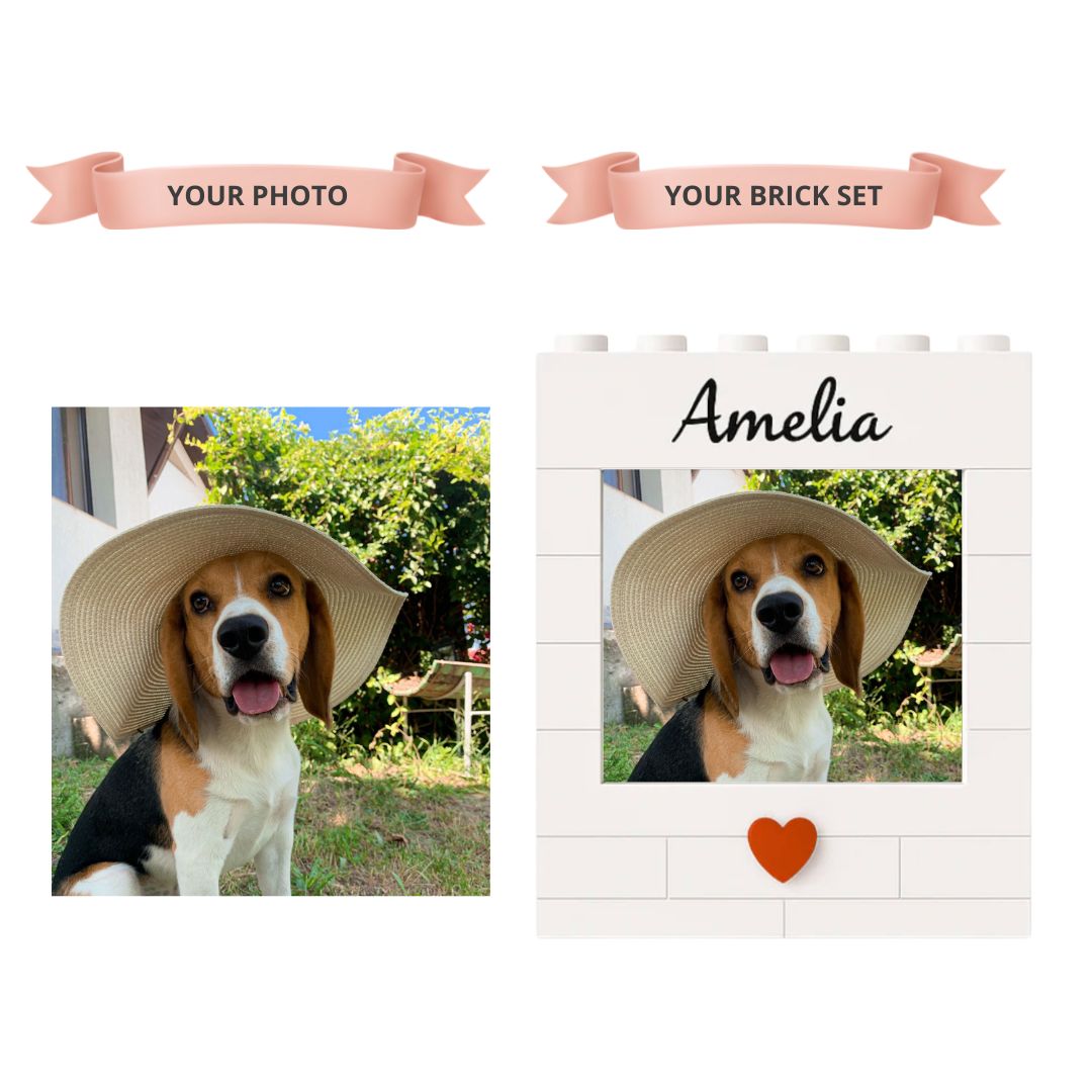Each set comes with custom-printed bricks that recreate your favorite photo of your dog, piece by piece. You just follow the simple instructions to build it, like a mini LEGO portrait! Once finished, you’ll have a wall style display of your pet with its name and photo! It’s fun to build and even more special to display.